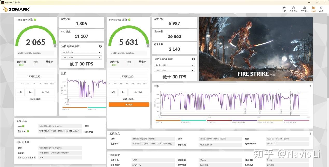 - Time Spy:总成绩 2065,其中核显 1806 / 处理器 11107Fire Strike:总成绩 5631,其中核显 5987 / 物理 26863/ 综合 2140