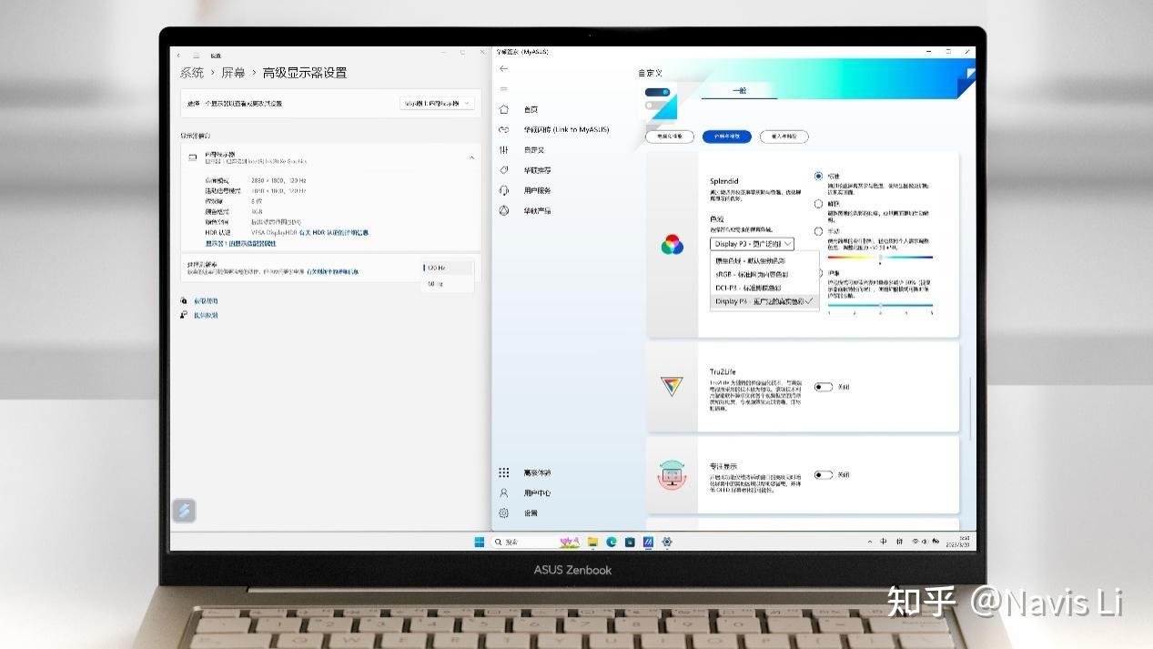 而在屏幕素质方面,作为旗舰版它搭载了一块16:10 比例2880*1800 分辨率的OLED屏幕,支持100% P3色域,在MyASUS中也提供了四种显示模式切换,可以任意切换适合当前的使用场景。