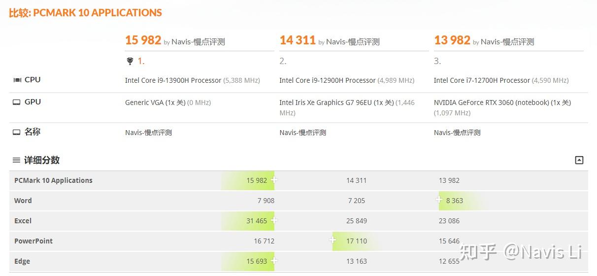 比如PCMARK10 应用程序测试,灵耀14 2023 旗舰版已经做到了15982,整体表现也完全不输于100W的12900H以及115W 的12700H,13代H45虽然看似核心数量于上代差异不大,但实际体验却明显有所提升。