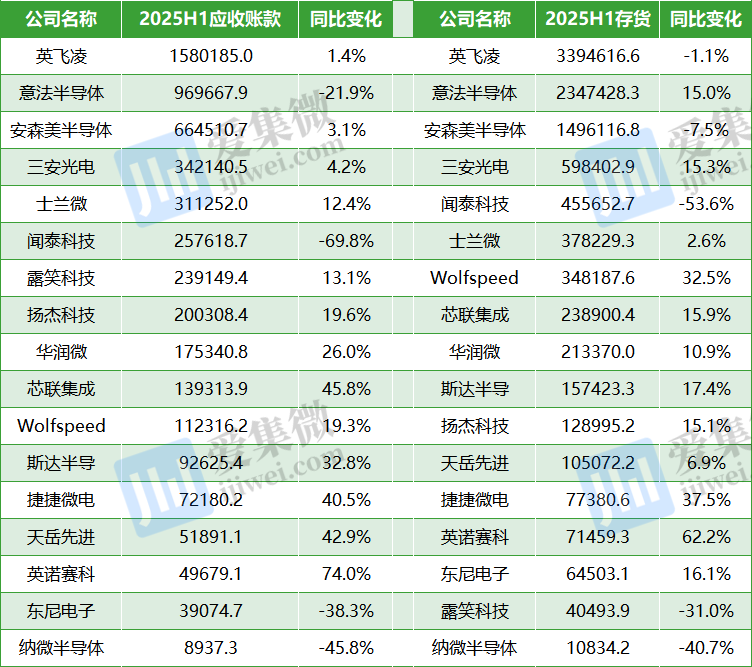 2025年上半年,A股、港股公司存货规模随产能扩张与订单增长同步上升,但多数企业存货周转保持健康。天岳先进存货10.51亿元,同比增长6.9%,主要因上海临港工厂产能释放,8英寸碳化硅衬底备货增加,且存货以原材料与在产品为主,产品迭代风险低;华润微存货21.34亿元,同比增长10.9%,与其MOSFET、IGBT产品在汽车电子领域的批量出货相匹配,存货结构中成品占比不足30%,减值风险可控。
