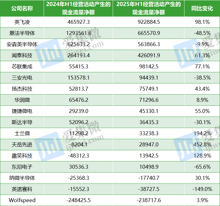 分析发现,2025年中报现金流已清晰勾勒出“中国产能落地、需求兑现”与“欧美去库存、价格厮杀”的两条曲线。A股、港股企业只要产品真正进入汽车、工业或海外功率器件供应链,现金回流即显著提速;反之,业务仍停留在传统环节或尚未放量的公司,现金流改善有限。美股方面,除英飞凌外,普遍需等待库存出清、价格企稳后才有现金修复空间,Wolfspeed的破产更提示现金流持续为负的企业将面临生存考验。