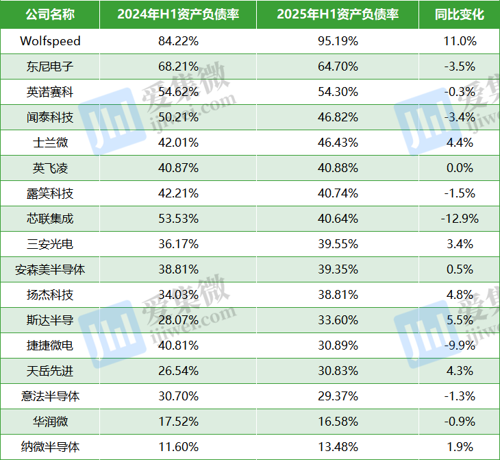 A股、港股公司资产负债率整体处于合理区间,多数企业杠杆水平稳健,财务风险可控。华润微资产负债率16.6%,同比下降0.9个百分点,主要因公司盈利积累带动净资产增长,且无重大有息负债,财务结构健康;斯达半导资产负债率33.6%,同比上升5.5个百分点,因公司新建6英寸SiC芯片产线适度增加负债,但负债以长期借款为主,偿债压力较小。