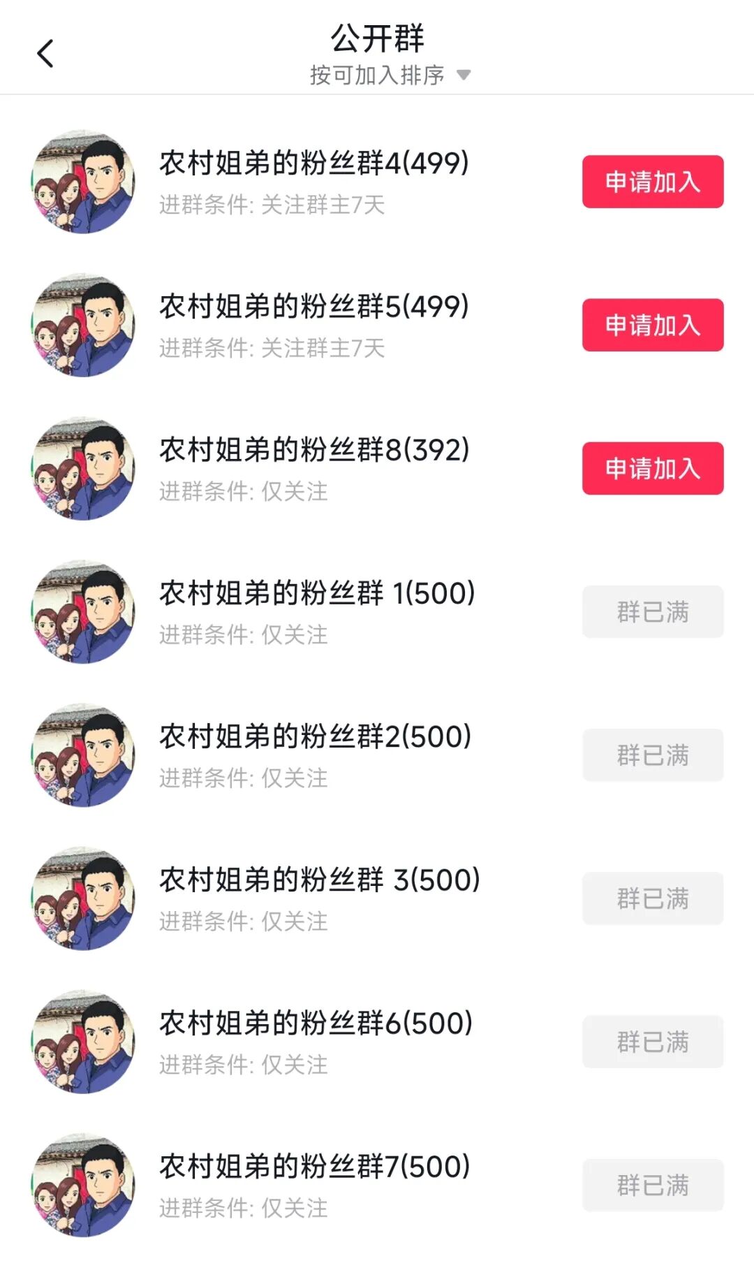第三,私域流量转化。多数乡村短剧创作者会创建粉丝群,进群门槛低。以抖音账号“农村姐弟”为例,“农村姐弟”共有8个公开群聊,其中5个公开群聊已满人。通过私域社群,创作者可以强化情感互动,维护受众,降低信任成本,从而进一步促进商业转化,构建“内容-用户-变现”的闭环。