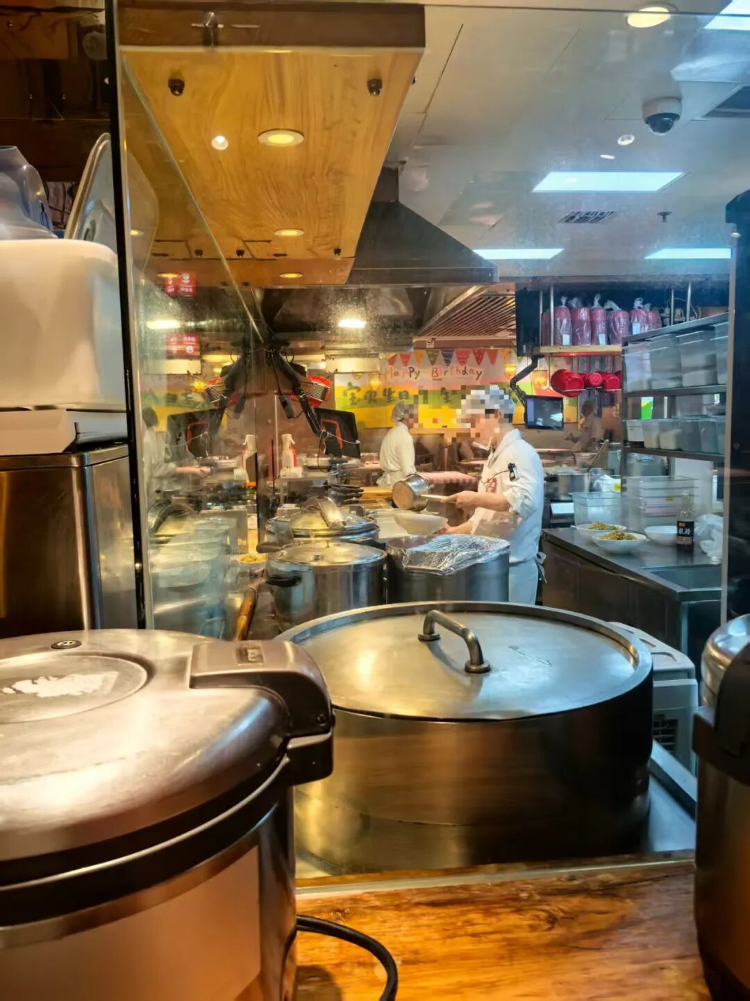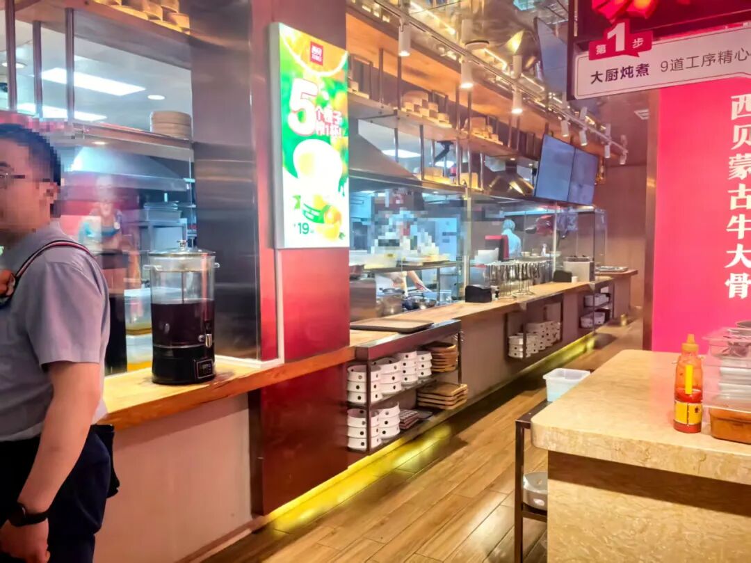 和很多西贝餐厅一样,门店内厨房都是用玻璃墙隔开,消费者能够直接看到厨师在后厨忙碌的样子。