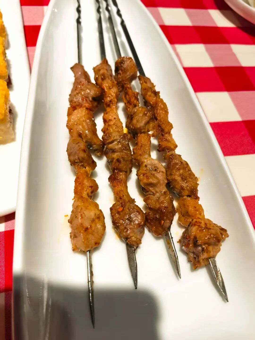 烤羊肉串,调整为在门店现切、现串、现烤。