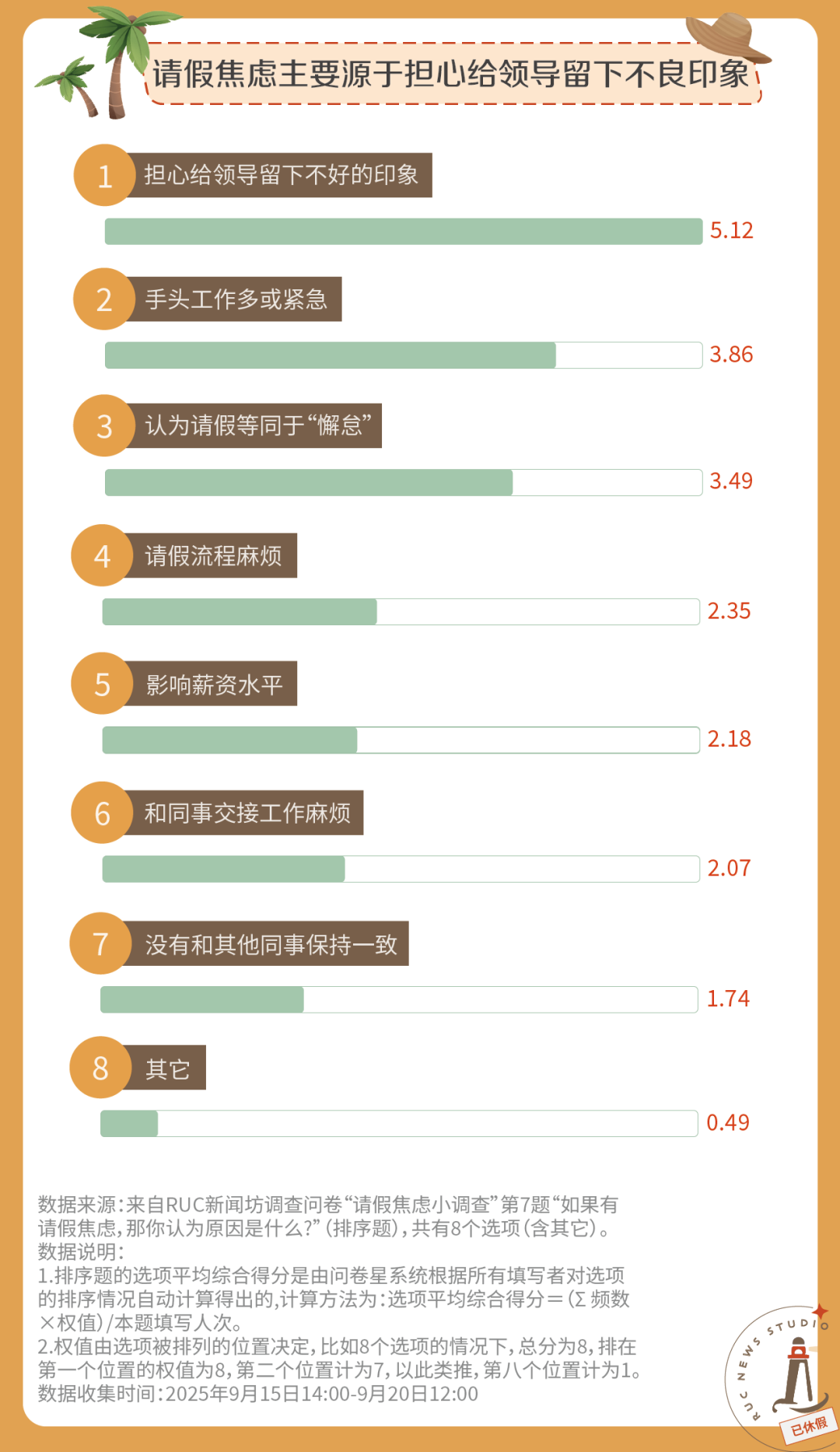 作为假期的直接批准者,领导往往掌握能否请假的“一票否决权”。我们发现,“担心给领导留下不好的印象”成为了请假焦虑的主要来源,比工作任务、薪资、请假流程等更容易造成请假负担。