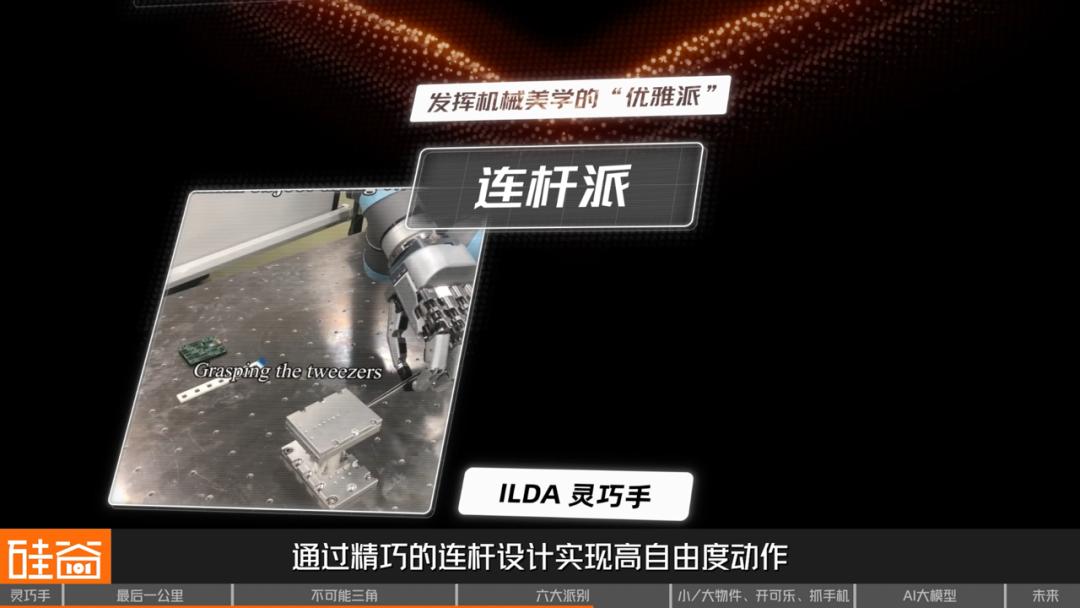 这一派的代表作是源自韩国研究团队提出的ILDA灵巧手,通过精巧的连杆设计实现高自由度动作。它的哲学是:将驱动器全部集成在手掌内部,用连杆、摇臂、滑块等机构把多个直线动作“分配”到多个关节,让手指多个关节弯曲,摆出类似人类手指的各种姿态。