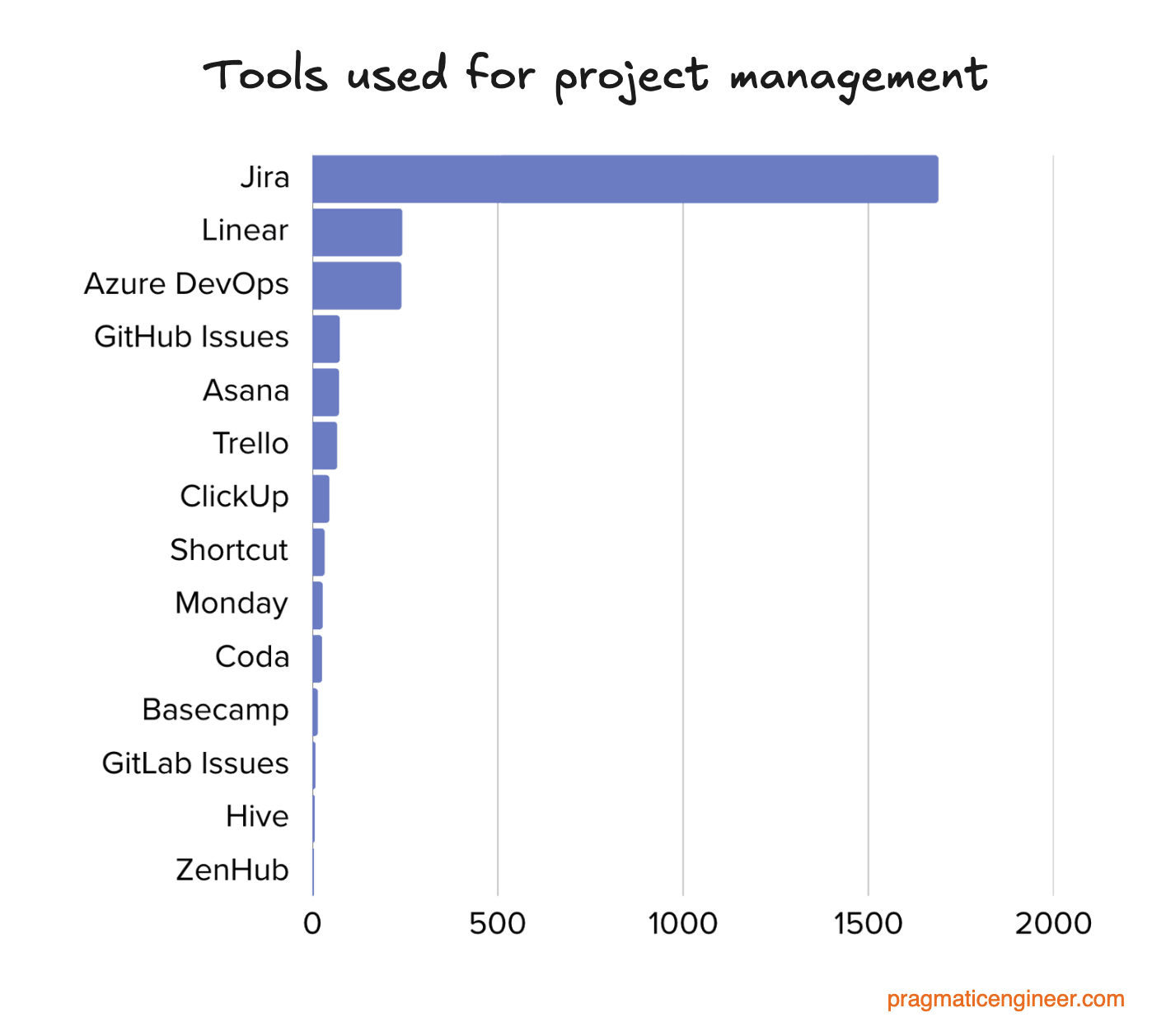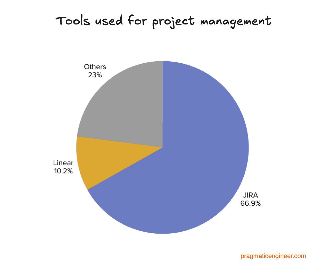 If we take just JIRA and Linear, the pair account for close to 75% of tooling usage in this survey: