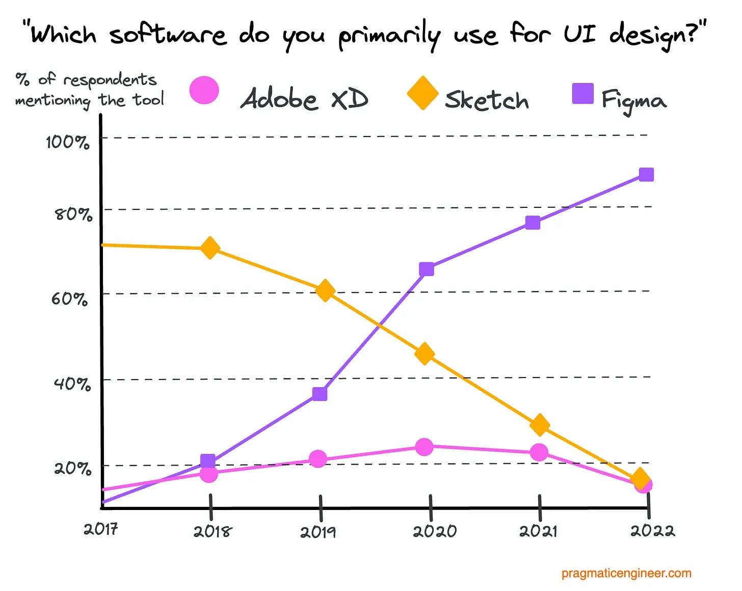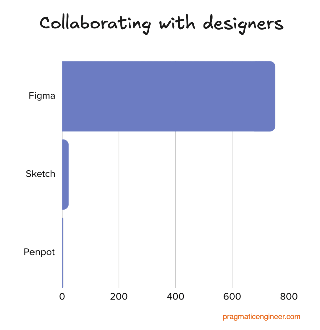 Figma mentioned more than Kubernetes or Cursor. Figma is a tool designers use for creating user interfaces which are easy to share with developers for collaboration. Figma recently went public, valued at $34B at the time of publication. It’s one of the most-used tools by software engineers, and our survey suggests why the company is so valuable.