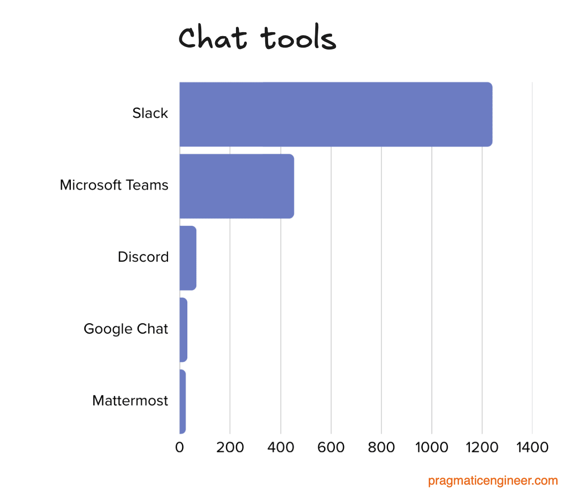 Slack dominates chat tools, with Microsoft Teams a distant second: