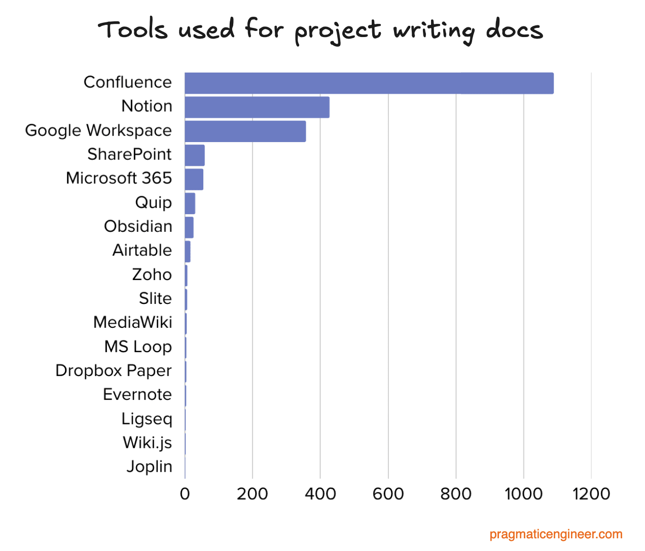 Confluence being so popular surprised me, not least because it’s the third most-disliked tool in our survey – although it’s also the most popular wiki and documentation tool among all companies. Seamless integration with JIRA – and being bundled as part of the Atlassian suite – seems more decisive in businesses adopting Confluence than developers’ complaints about it are.