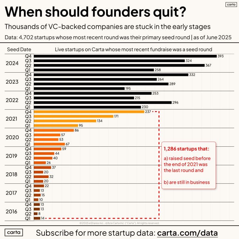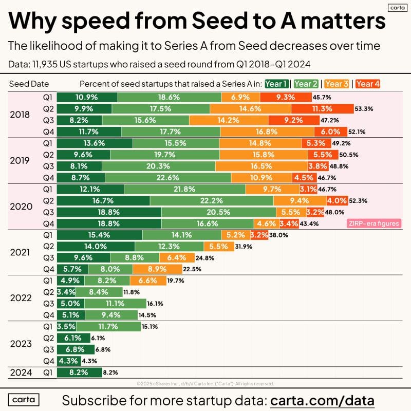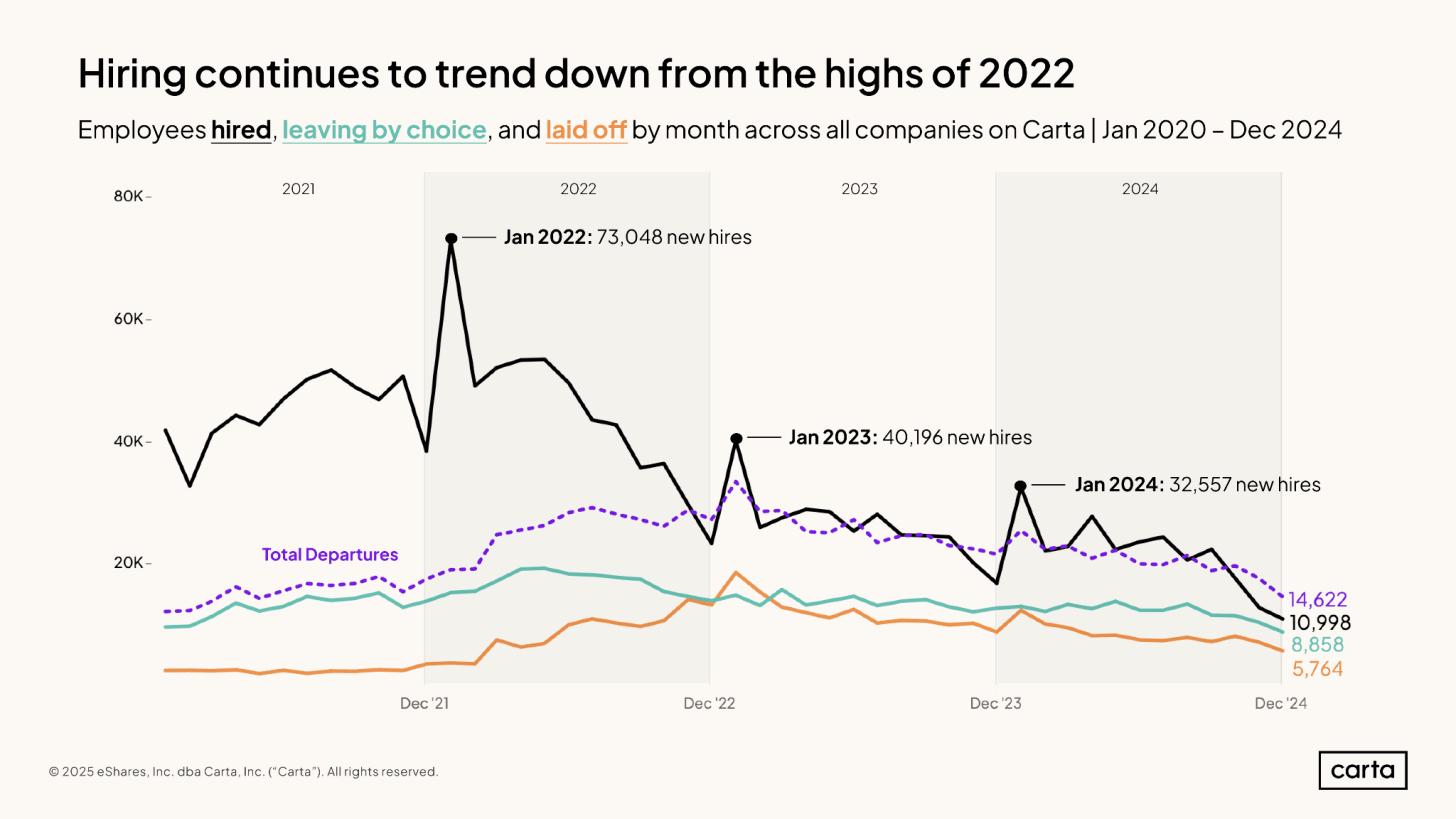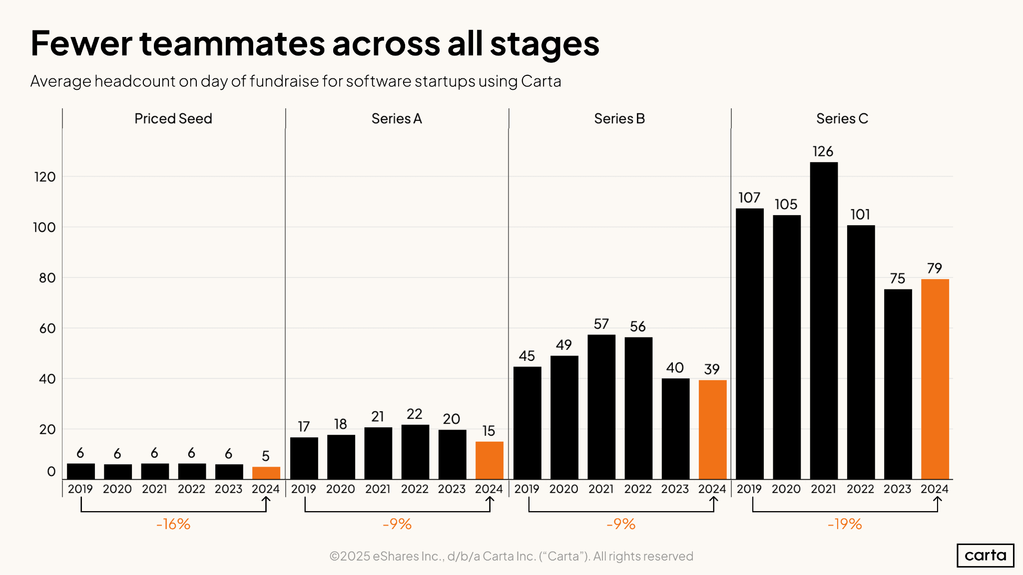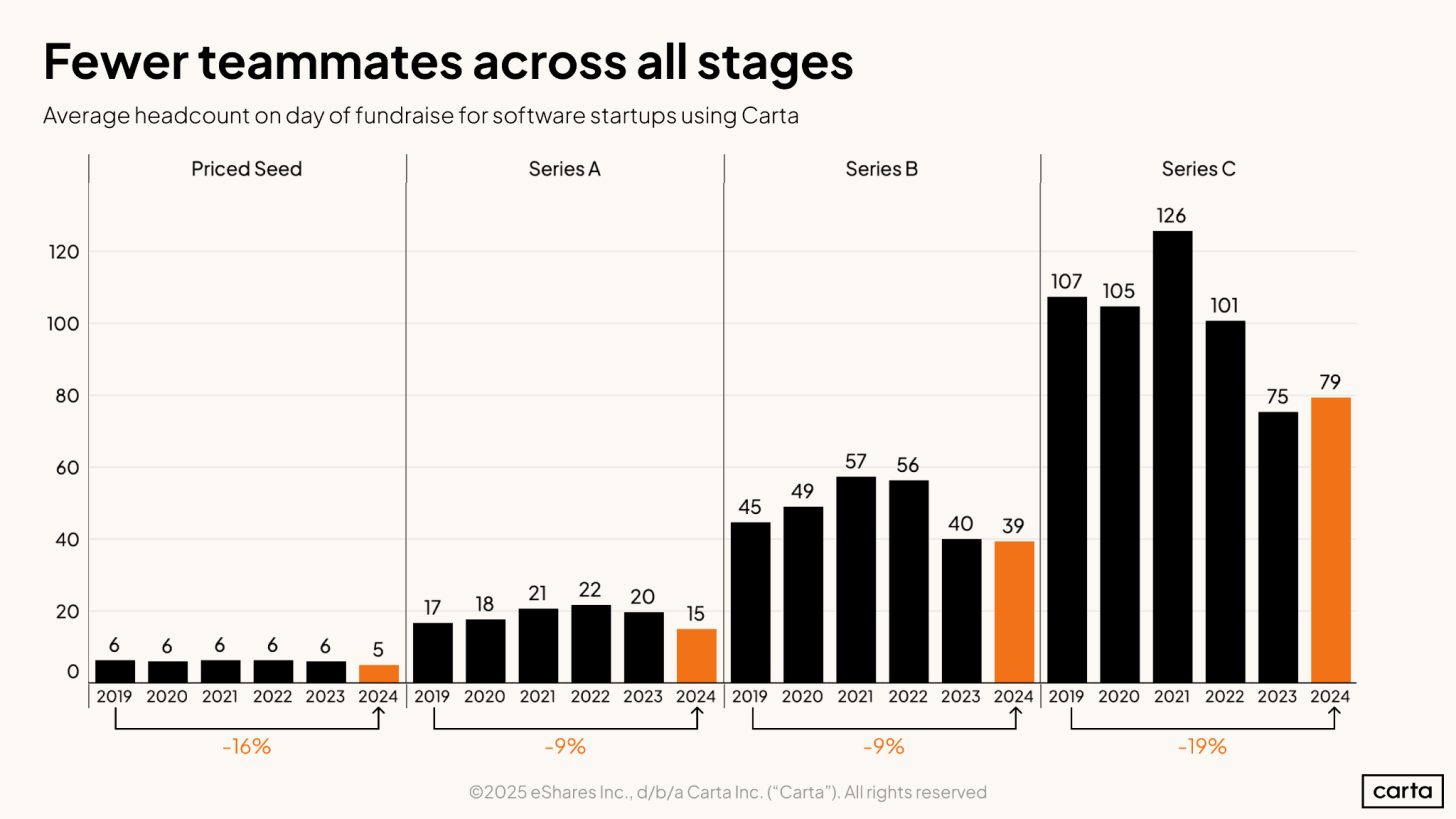 A few of the interesting graphs and trends we discussed, all from the Carta Data Minute newsletter.