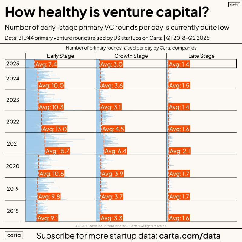 Today’s episode features more than a dozen charts. We go deep on the numbers: why fewer companies are getting funded despite record VC investment levels, how hiring has shifted dramatically since 2021, and why solo founders are on the rise even though most VCs still prefer teams. We also unpack the growing emphasis on ARR per FTE, what actually happens in bridge and down rounds, and why the time between fundraising rounds has stretched far beyond the old 18-month cycle.