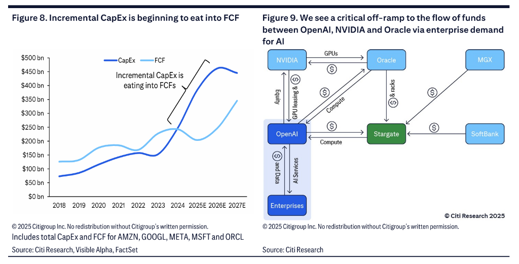 面对如此狂热的投资,市场普遍关心这是否会重演本世纪初的互联网泡沫,特别是资金在巨头之间“循环”的现象,例如英伟达投资OpenAI,而OpenAI又是英伟达和甲骨文的大客户。