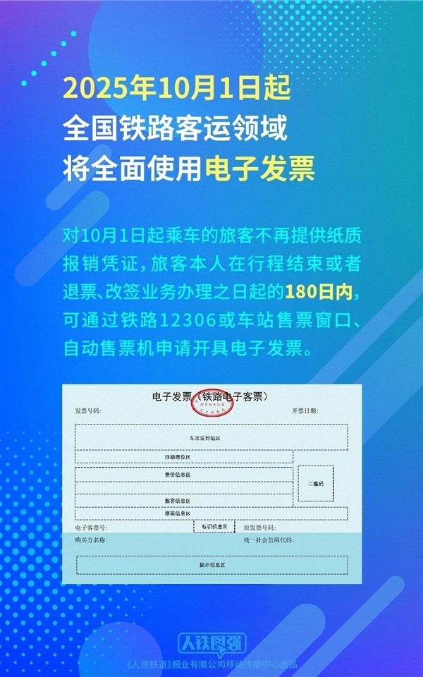 🚄 全面电子化:自2025年10月1日起,全国铁路旅客运输将正式告别纸质报销凭证,全面启用电子发票,旨在提升效率和便利性。