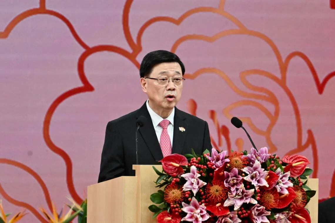 根据香港特别行政区政府网站发布的新闻稿,李家超在酒会上发表致辞说, 回望过去四分之三个世纪,中华民族走过了极不平凡的征程。从抗战胜利到建国初期的艰辛奋斗,从改革开放迈向新时代高质量发展的经济腾飞,中华民族实现了从站起来、富起来到强起来的伟大飞跃。