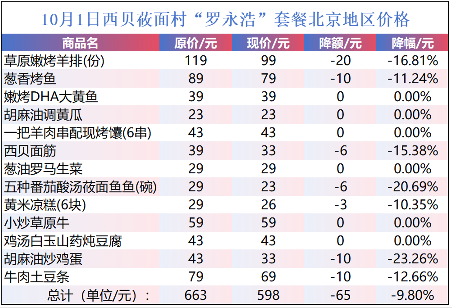 “罗永浩”套餐,13道菜降价不到10%