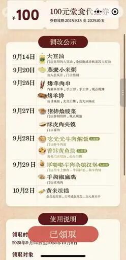 来源/西贝小程序截图扫码领取100元代金券即可看到该调改公示
