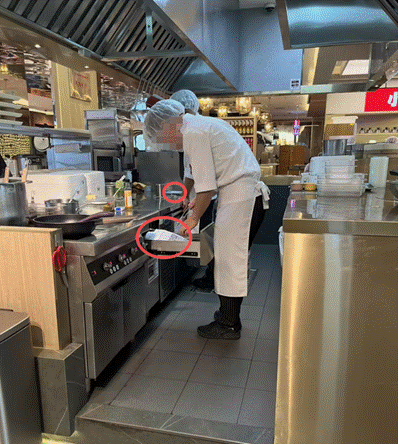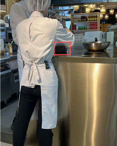 当凤凰网《风暴眼》试图与其进一步交流时,该员工接到一通电话,随即被叫走。几分钟后,他匆匆返回拿起遗漏在桌上的后厨头套,目不斜视地离开了。