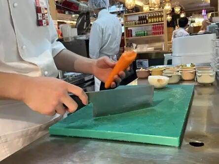 说完他看了看黑白打印纸,取出一个胡萝卜。这和之前的制作流程有什么不一样?该员工表示,跟以往差别不大,只是工序发生了调整。他手中的胡萝卜,需要切好后再用搅拌器搅成泥,“还有的是这种”,说着他从下方冷藏室拿出类似速冻包装的胡萝卜丁展示了一下,但具体发生了哪些变化,其未回答。
