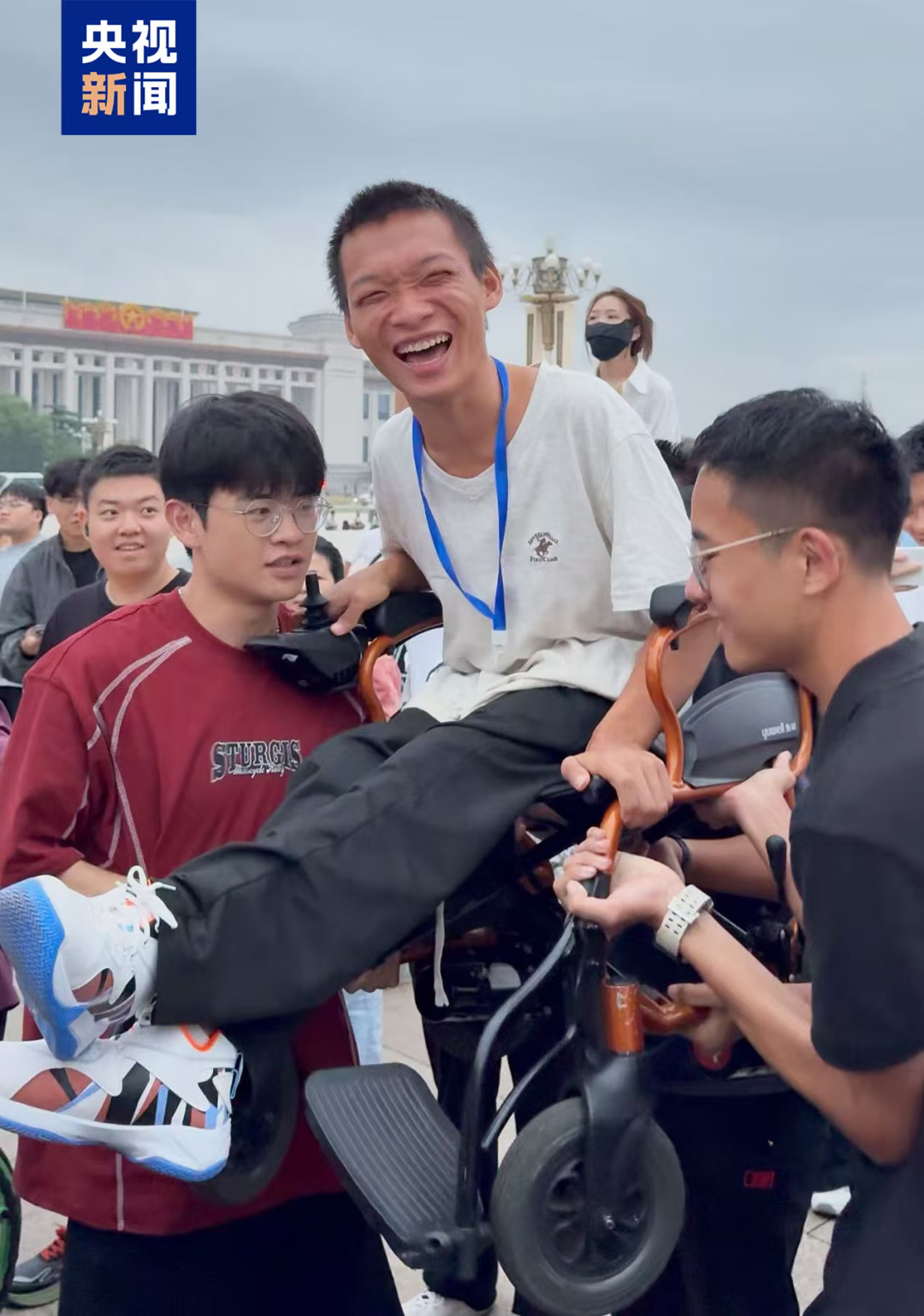 是脑瘫少年终于来到天安门广场在陌生人的热心托举下圆了儿时看升旗的梦想