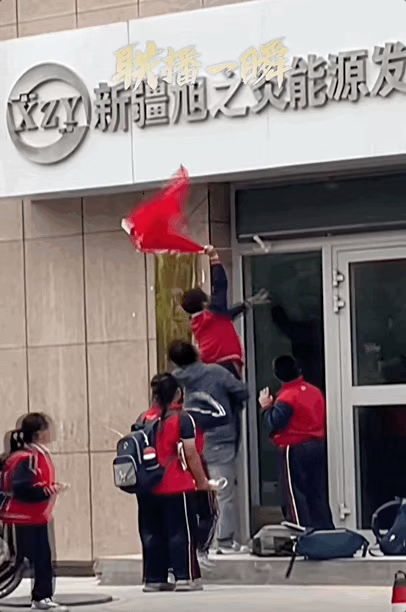是四名小学生自发捡起被风吹落的国旗“无论如何要让它迎风飘扬不能掉地上沾上灰”