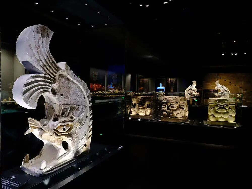 西夏陵博物馆展出的力士志文支座和鸱吻建筑构建
