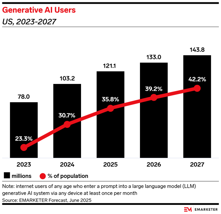 这个对比很能说明问题,AI带来的流量增长还远远无法弥补传统搜索流量的下降。但增长趋势不容忽视,根据Similarweb的数据,ChatGPT对新闻网站的推荐流量在2024~2025年间增长了25倍。