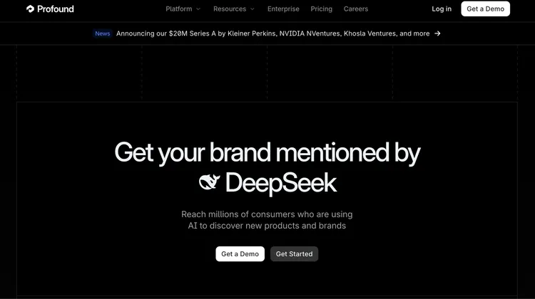 Profound是这个赛道里最受资本青睐的公司之一。这家2024年成立于纽约的初创公司,在2025年6月便宣布完成了由顶级风投Kleiner Perkins领投的2000万美元A轮融资,NVIDIA的创投部门NVentures以及Khosla Ventures等知名机构也参与其中。Profound从一开始就瞄准了大型企业客户,Indeed、MongoDB和金融科技公司Ramp都在使用它的服务。