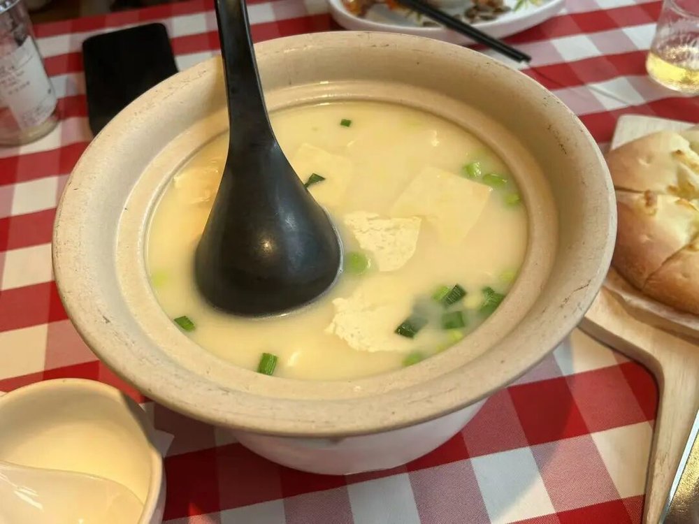 此外,虽然门店撤掉了25分钟上菜计时沙漏,但上菜速度不慢。界面新闻点了包含“罗永浩套餐”里的葱香烤鱼、鸡汤白玉山药炖豆腐、黄米凉糕在内的共计7道菜,从点菜完毕到全部上齐,一共约15分钟。