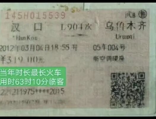 2012年,他坐上了从起始站汉口发往终点站乌鲁木齐的L904次列车,经历了近三天三夜的“煎熬”。