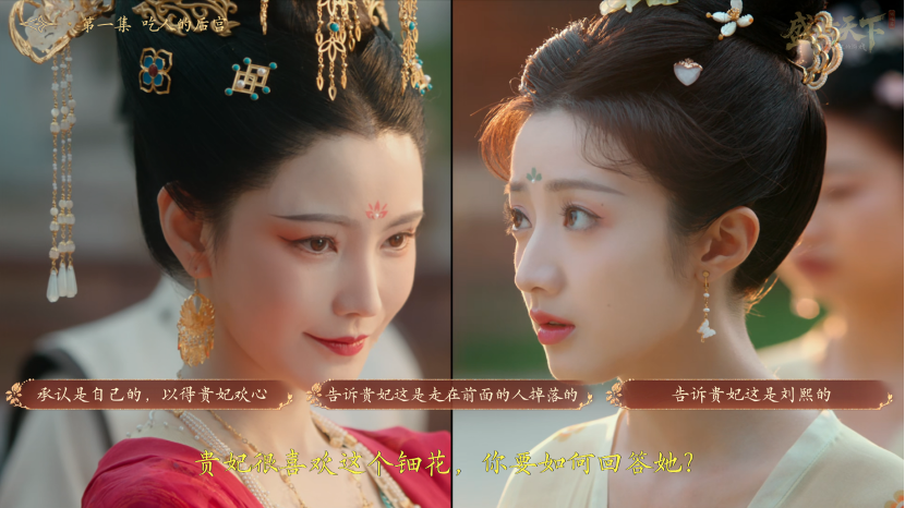 在此基础上,制作团队巧妙地将深度参与感与高质量视听体验相结合,成功实现了对传统文字互动游戏的体验升级。与橙光和易次元平台上的传统文字互动游戏(宫廷权谋类)相比,《盛世天下》虽然在一定程度上牺牲了角色养成要素,但在沉浸感和代入感方面实现了显著提升,真人出演的形式创造了更为直接的情感冲击和剧情张力。