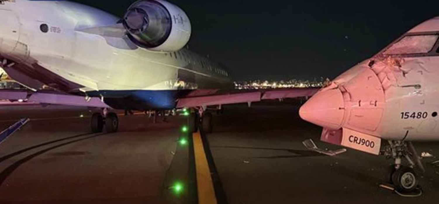 据美国媒体当地时间10月2日报道,两架美国达美航空公司旗下的支线飞机在纽约拉瓜迪亚机场滑行时低速相撞,一架飞机机翼受损,一人受轻伤。