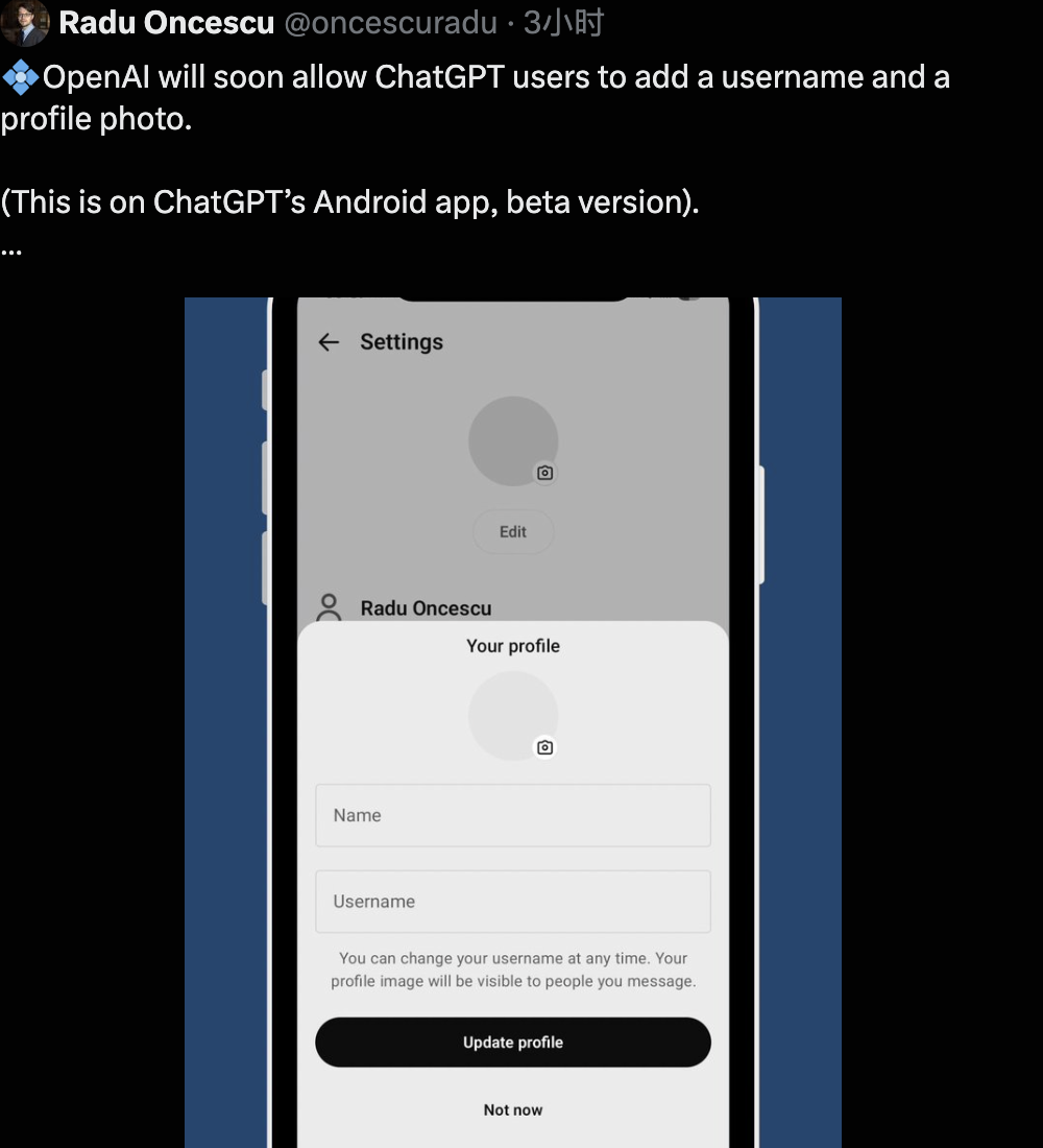 与社交模式配套的设置头像和昵称功能也已经出现了。