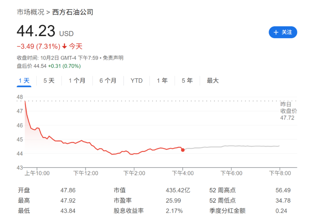 这些交易让西方石油的杠杆率在其同行中高居不下,尤其在当前OPEC+增产导致油市疲软的背景下,投资者对其财务状况的担忧与日俱增。公司股价在过去一年中下跌超过17%。据媒体一篇评论文章计算,在交易前,西方石油2025年的净债务预计将是EBITDA的1.7倍。