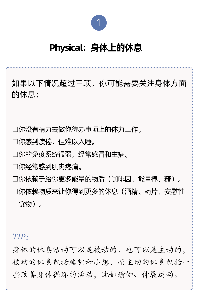 所以今天跟大家聊聊,到底什么样的休息才是高质量的休息,以及你现在最需要的是哪种休息?