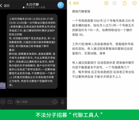 2025年10月3日,微信安全中心发布安全提示,针对近期出现的新型网络诈骗行为向用户发出警示。根据用户举报情况,发现有不法分子在部分外部平台散布“代聊招募”信息,以提供兼职为名吸引人员充当所谓“代聊工具人”。这些人员被组织者指使,通过虚构寻找宠物、车辆刮擦纠纷处理、相亲交友等理由,主动添加他人微信好友,并以“误加好友”作为开场白,展开搭讪。
