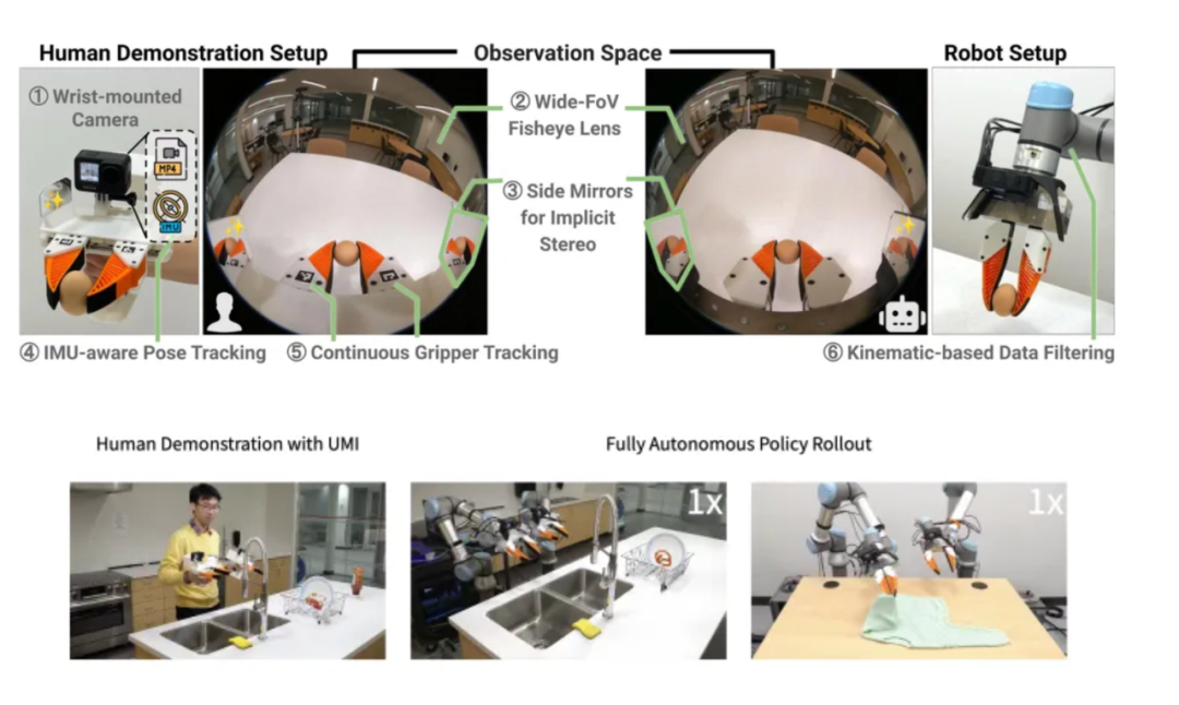 相信不少人看过去年他们发布的UMI,通过记录并学习人类操作,让夹爪类机器人学会洗碗,结果在行业引发不小的关注和轰动。