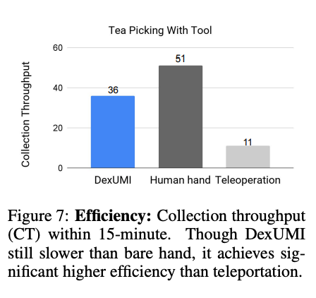 相比于遥操,DexUMI具有两个主要优势:1)DexUMI 比传统的遥操作方法效率更高;2)DexUMI 提供直接的触觉反馈,而典型的遥操作系统通常无法提供这种反馈。