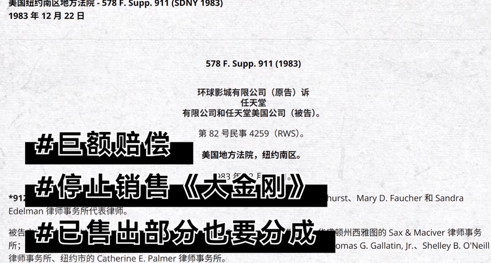 除此之外,环球有着多年的诉讼经验,而当时的小任在打官司方面还是一张白纸。同时,环球拍出过多部金刚电影,它声明版权理所应当,要求赔偿好像也合情合理。