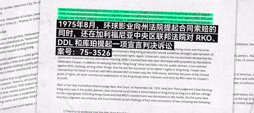 原来早在1975年,环球影业就曾为金刚的版权问题与雷电华电影公司打过官司,不过上次的官司中环球是被告,被指控未授权使用金刚IP。好嘛,环球在这又唱又跳搞了半天,原来它也没有金刚的版权。