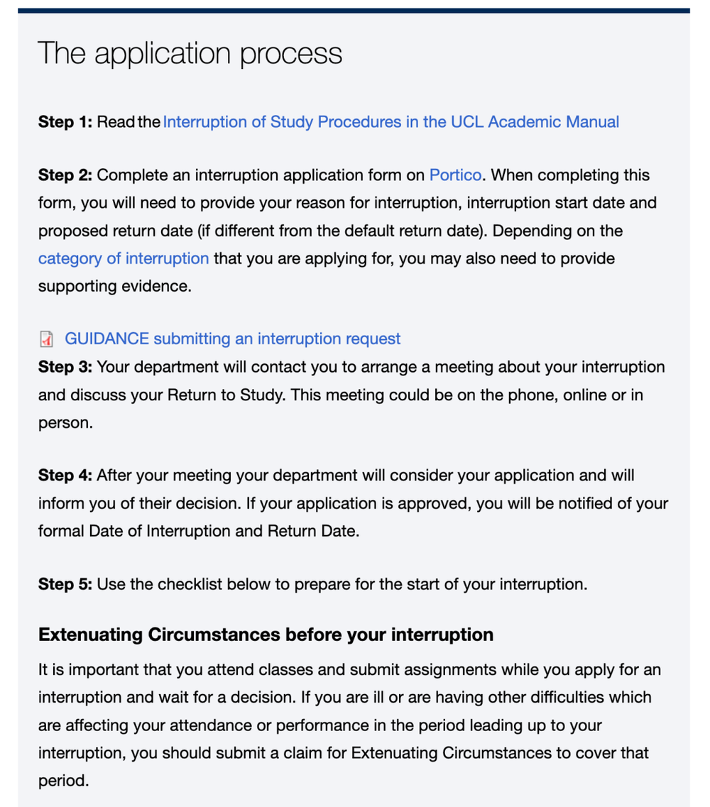 以下是UCL关于中断学业的付款条例和申请步骤: