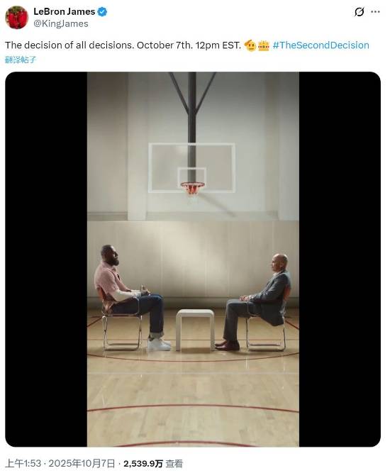今天早些时候,洛杉矶湖人队球星勒布朗·詹姆斯通过社交媒体发布了一段名为“第二次决定”的短视频,宣布将于北京时间2025年10月8日凌晨0点(美东时间10月7日中午12点)正式揭晓一项重要决定,引发广泛关注。