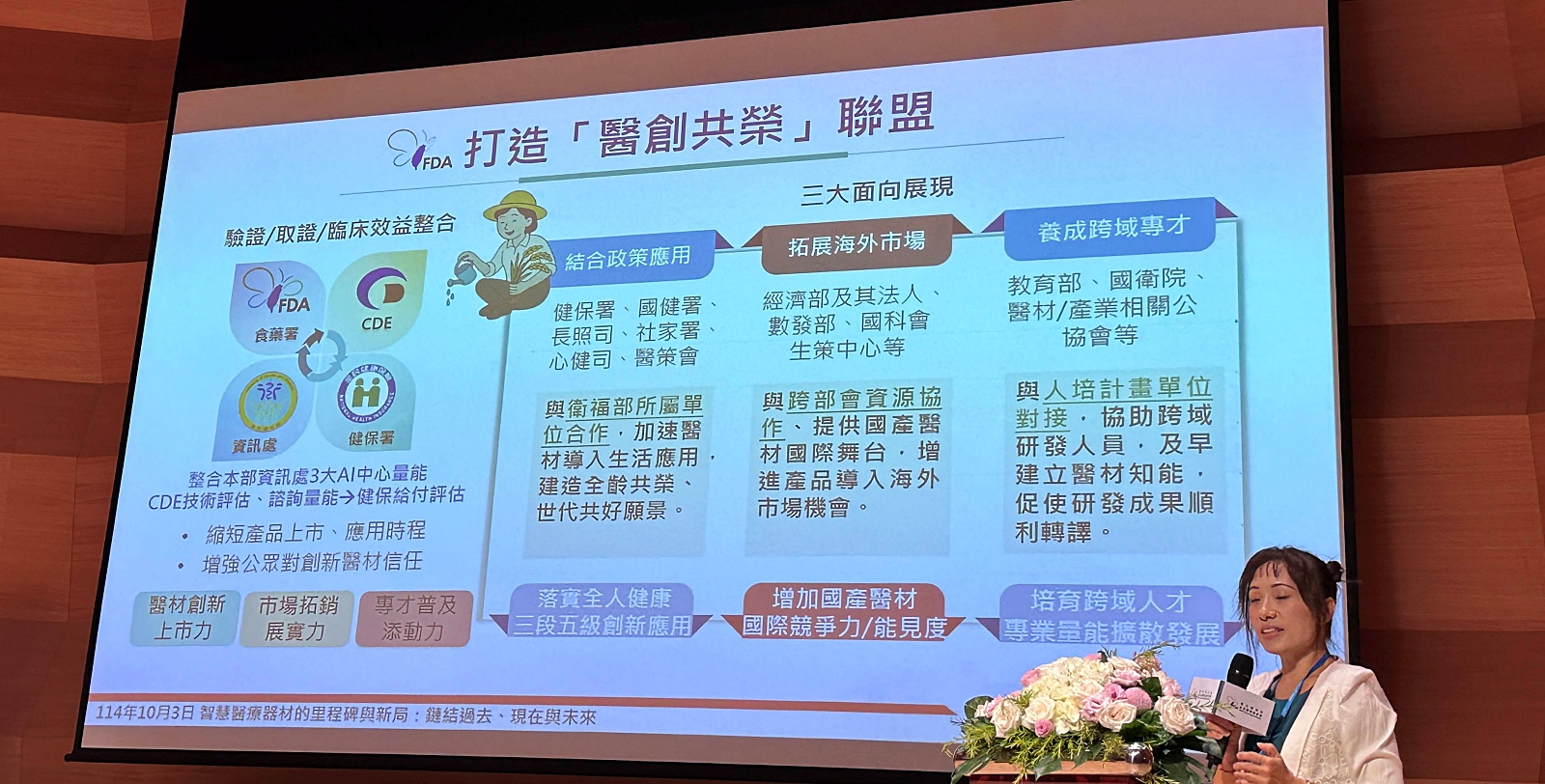 吳亭瑤也預告,食藥署還要聯手更多政府單位,來推動醫創共榮聯盟,比如聯手衛福部旗下單位(如健保署、國健署、長照司等),結合政策來加速智慧醫材的導入,又或是與經濟部及其法人、數發部和國科會等部會,提供資源助國產智慧醫材銷往國際。食藥署也鎖定人才培育,要與教育部、國衛院或醫材相關產業公會,協助培育跨領域人才、累積專業知識並擴散。