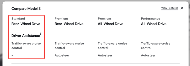 如果对标准版Model 3、Model Y的这些减配仍觉得可以接受,那么特斯拉还准备了一个连大量品牌忠实粉丝都表示看不懂的操作——减配Autopilot功能。