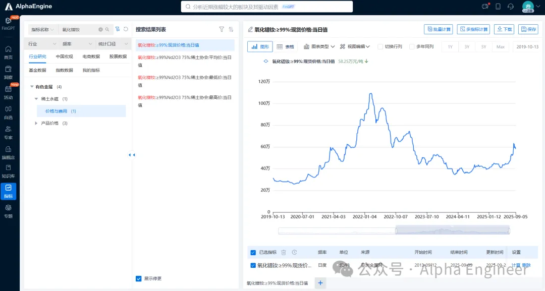 图:氧化镨钕价格走势,AlphaEngine