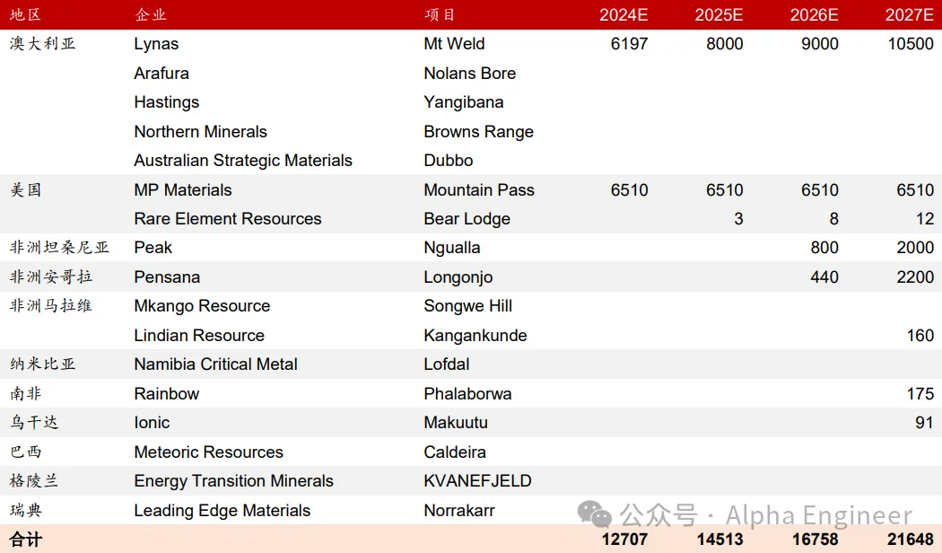 *注: 海外稀土供给梳理(单位:吨) ,中泰证券,AlphaEngine
