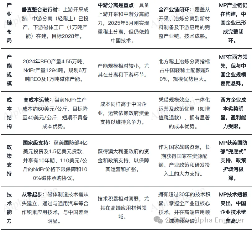 尽管MP Materials和Lynas等企业具备上游开采和氧化物生产能力,但仍高度依赖中国进行后续加工,无法实现供应链的完全独立。