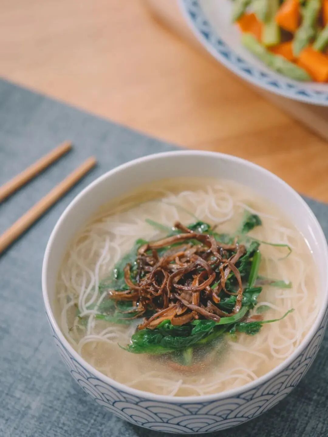 三日后开坛,鸡枞已吸饱香辣。挑一筷盖在过桥米线上,滚汤一冲,油花里浮沉的菌丝重新舒展,仿佛又活了过来。那滋味教人想起松林里的晨雾,想起菌窝边湿润的泥土,想起阿婆采菌时哼的白族调子——所有山野的记忆,都在舌尖上醒来了。