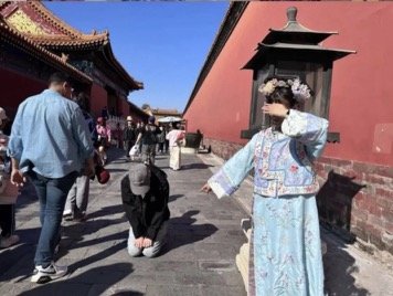 故宫游客还原《甄嬛传》中名场面“甄嬛长街受辱”。(图/社交媒体截图)